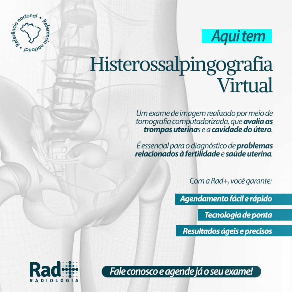 ✅ A Histerossalpingografia Virtual é um exame moderno, rápido e pouco invasivo. Com ele, você pode detectar problemas como obstruções nas trompas, miomas, pólipos e outras condições que podem afetar sua fertilidade.