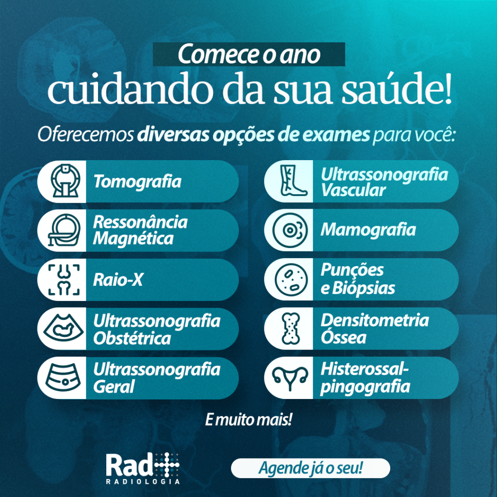 📍 Na Rad+ Radiologia, oferecemos uma ampla variedade de exames para cuidar de você.