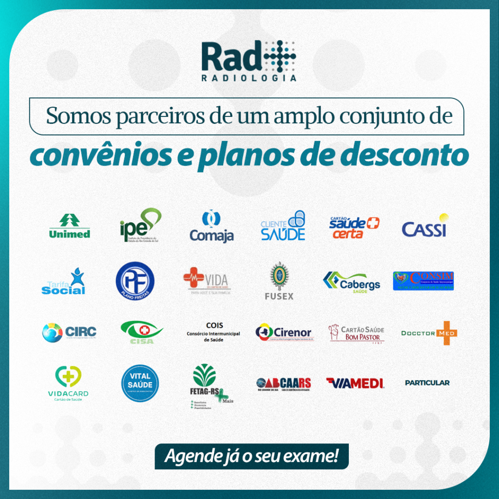 ✅ A Rad+ Radiologia é parceira de um amplo conjunto de convênios e planos de desconto. Confira as opções disponíveis e escolha a que melhor atende às suas necessidades. 😉